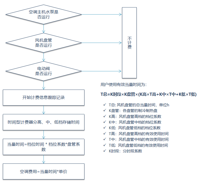 當(dāng)系統(tǒng)提供制冷或制熱的前提下,用戶電動(dòng)閥門打開(kāi),用戶的風(fēng)機(jī)盤(pán)管有效運(yùn)行,系統(tǒng)開(kāi)始監(jiān)控計(jì)費(fèi)。
