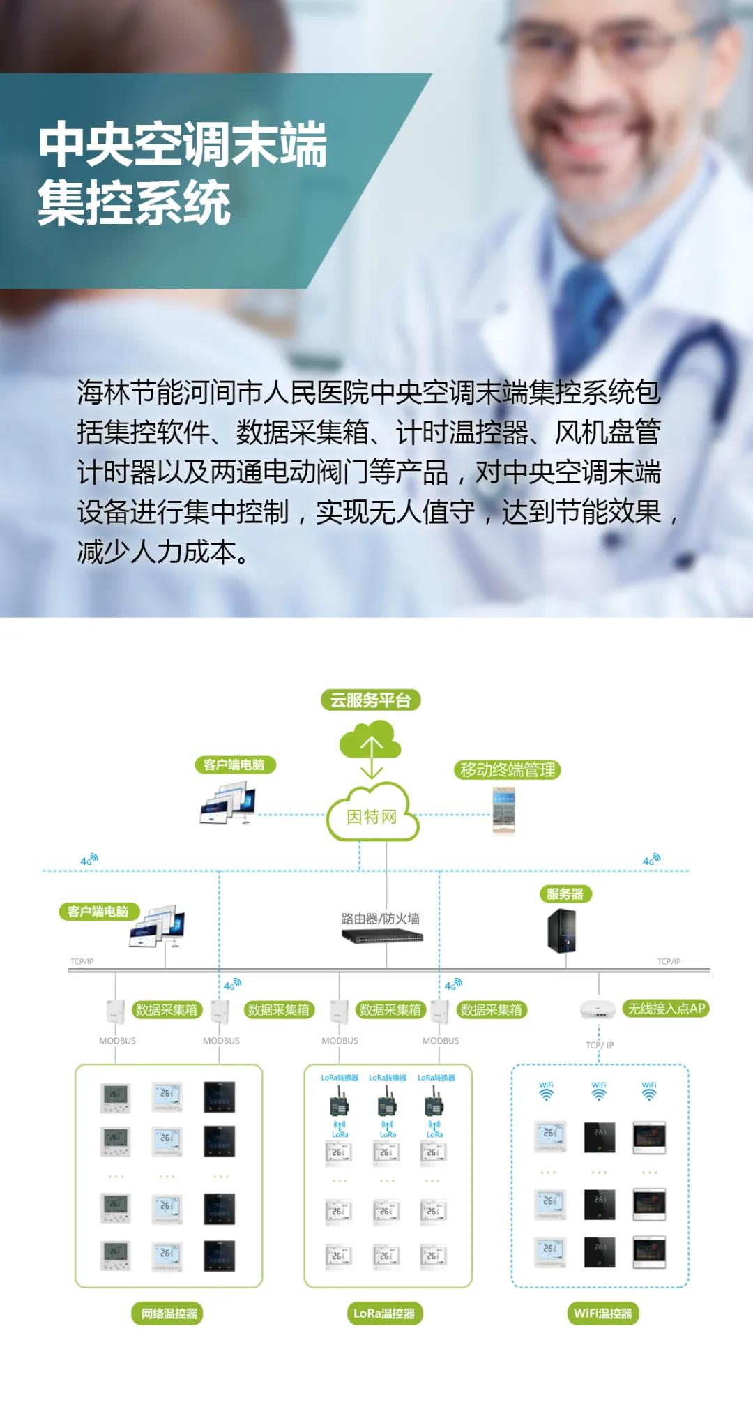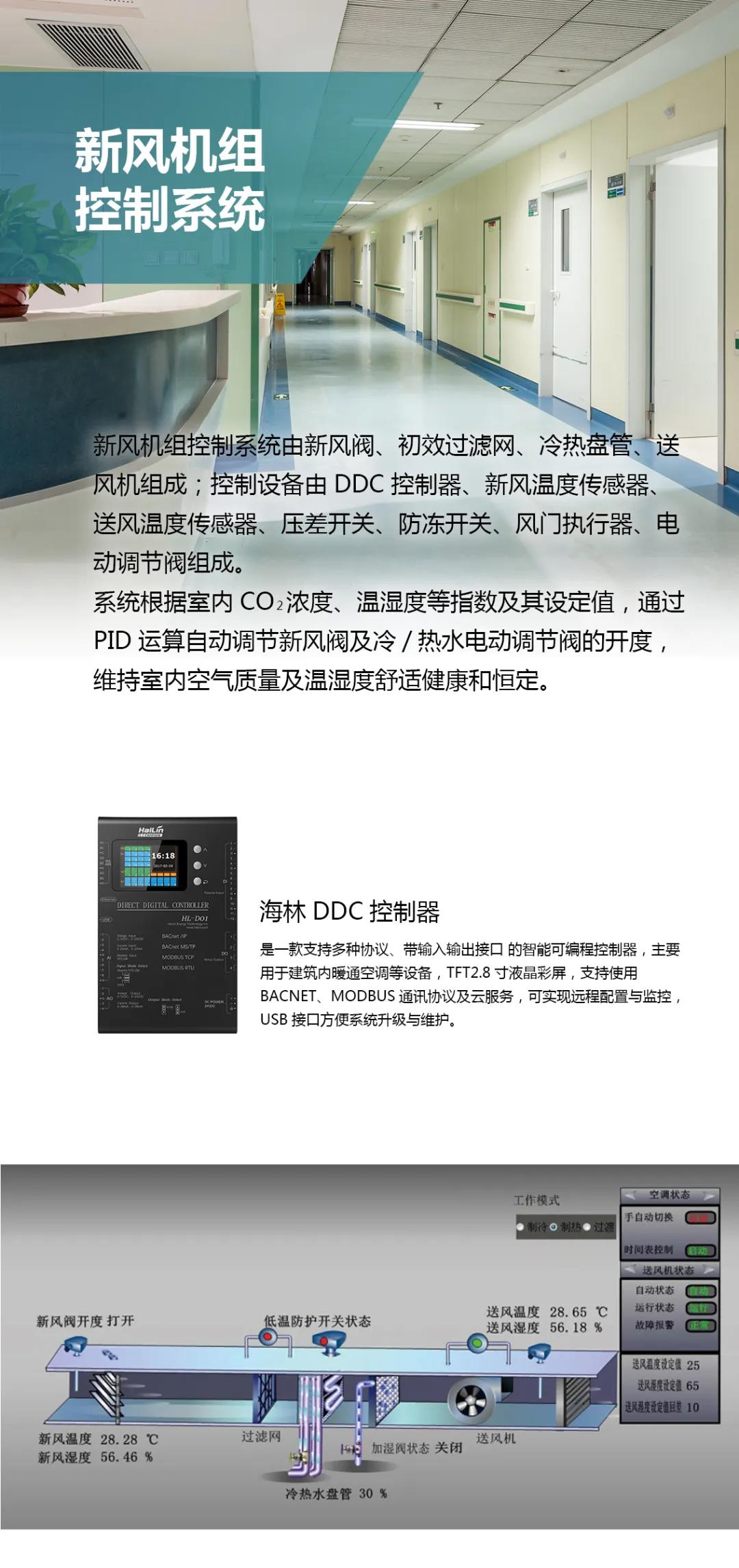 海林節(jié)能作為暖通自控設(shè)備供應(yīng)商,為河間市人民醫(yī)院提供了中央空調(diào)末端集控系統(tǒng)、水力平衡系統(tǒng)、新風(fēng)控制系統(tǒng)等技術(shù)和設(shè)備,為醫(yī)院營造舒適健康和節(jié)能的高品質(zhì)環(huán)境。
