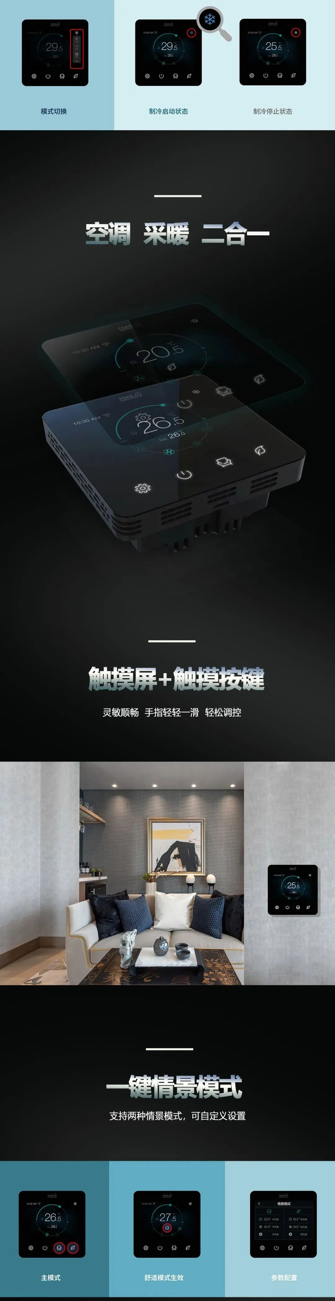 海林炫動溫控器適用于中央空調及供熱采暖的室內溫度控制。