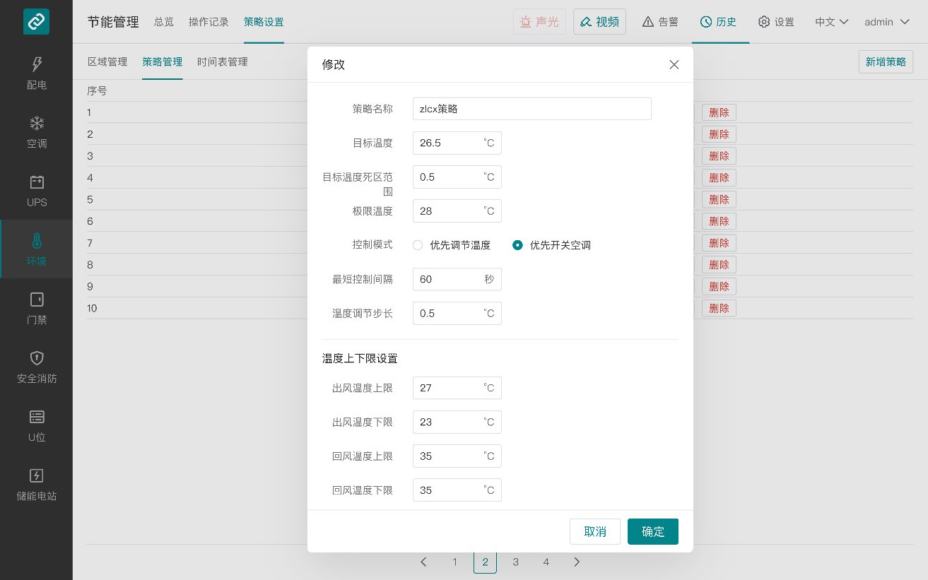 (1)空調(diào)用電的優(yōu)化,在滿足機房熱負(fù)荷需求、環(huán)境溫度要求的前提下,通過自動調(diào)節(jié)空調(diào)出回風(fēng)溫度設(shè)定、運行數(shù)量來實現(xiàn)空調(diào)用電的最優(yōu)化。