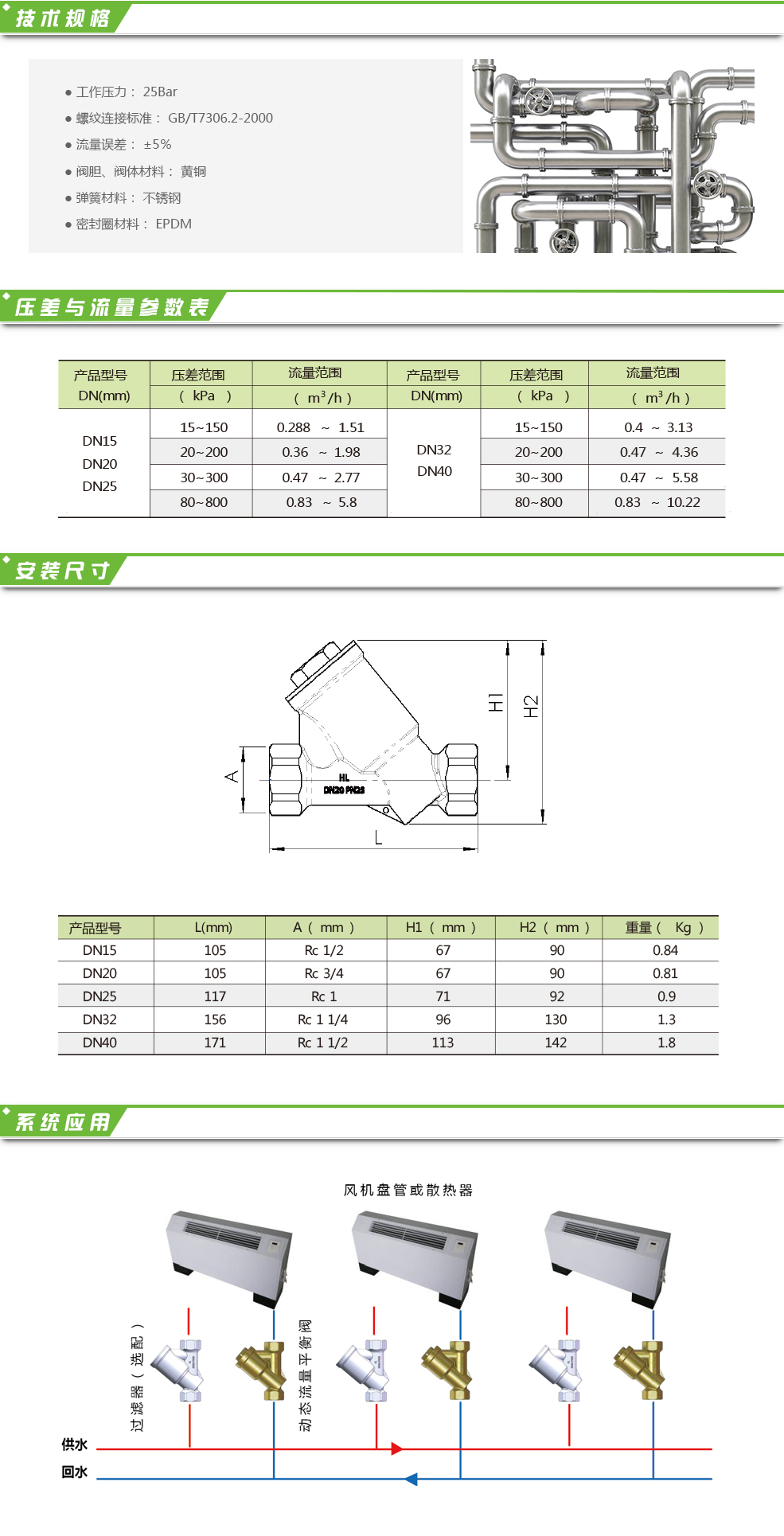 動態流量平衡閥亦稱自力式流量控制閥、自力式平衡閥、定流量閥、自動平衡閥等,它是根據系統工況變動而自動變化阻力系數,在一定的壓差范圍內,可以有效地控制通過的流量保持一個常值,即當閥門前后的壓差增大時,通過閥門的自動關小的動作能夠保持流量不增大,反之,當壓差減小時,閥門自動開大,流量仍保持恒定。