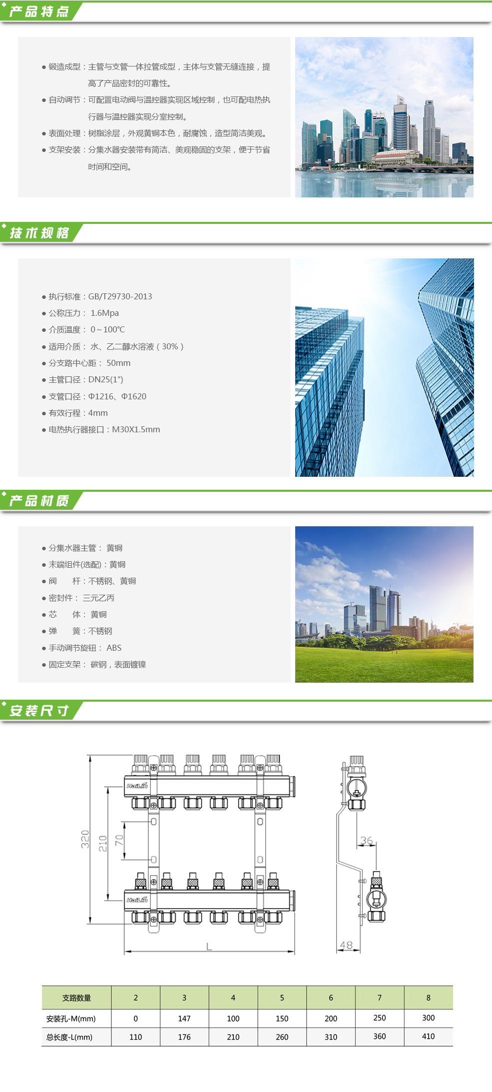 TH36系列分集水器為黃銅整體型材一體式分集水器,適用于地板采暖系統,控制輻射地板采暖系統的熱能。分集水器各回路均內置了調節水量的閥芯。可加裝電熱執行器和溫控器實現獨立分室溫度控制。用戶根據需要可自行設定室溫,溫控器會自動檢測房間溫度,并向執行器輸出信號,關閉或打開此房間的執行器,使室溫保持在設定的范圍內。也可以在分集水器主管上加裝電動閥,與溫控器配套 ...